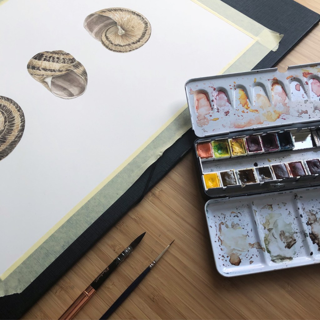 La ilustración del cascarón del caracol ha formado parte en la exposición «Ilustrando la naturaleza», 2019 en la Facultad de Ciencias y Tecnología de Bilbao, Universidad del Pais Vasco.